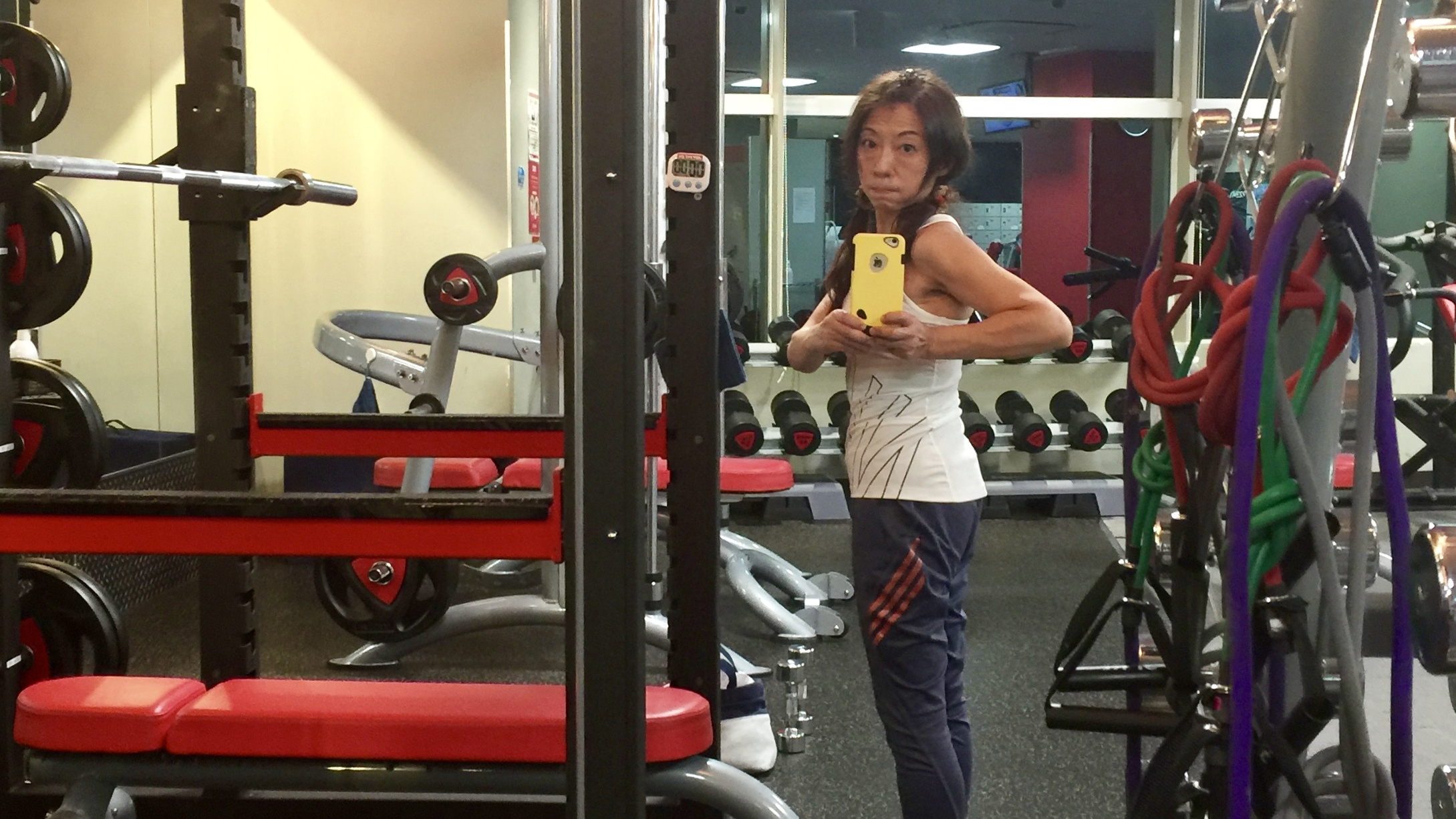 筋トレは50歳になってから始めたのですが、とことんハマっています。7年前、カーブスという高齢の女性向けの筋トレジムに行ったのが始まりで、効果があまりに顕著に出るのでどんどんエスカレートし、マシンだけでは満足できずウェイトトレーニングにシフトしました。今は、男性のボディビルダーのお兄さんにパーソナルトレーナーをお願いして、時々しごいてもらっています。その他はもっぱら一人でゴリゴリトレーニング。